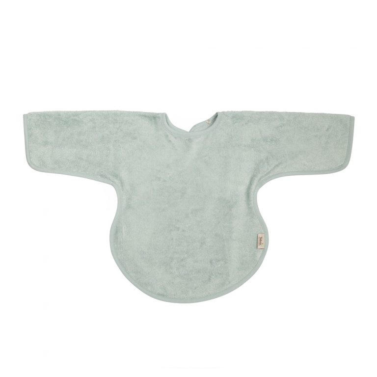 - Medidas do babete da marca Timboo com mangas: 36 x 34 cm.