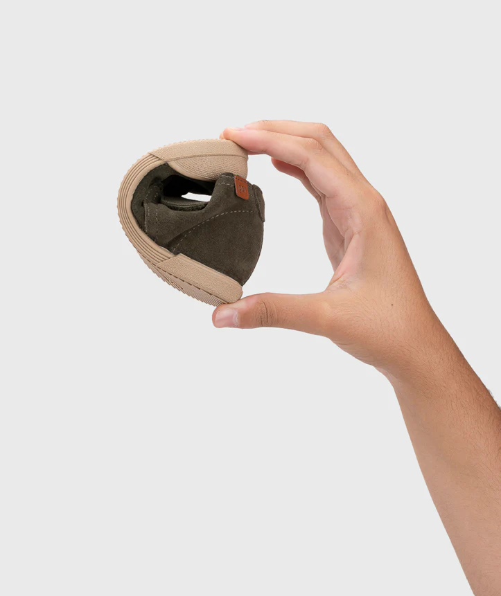 Estas botas em camurça foram desenhadas segundo o conceito barefoot medium: sola totalmente plana e flexível, sem qualquer desnível, que respeita o movimento natural dos pés.