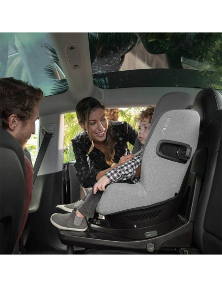 Cadeira Auto PRYM™ Nuna Dove Grupo 0+/1 com base isofix rotativa a 360º, permitindo que o bebé viaje em contra marcha desde o nascimento até até aos 105cm ou 18.5Kg e virado para a frente a partir dos 15 meses ou 76cm aos 105cm ou 18.5Kg. Instalação segura e fácil, a cadeira auto i-Size inteligente com proteções de impacto lateral, que se abrem automaticamente ao apertar o cinto, redutores extraíveis e proteção anti rotação.