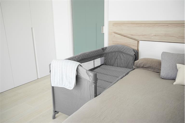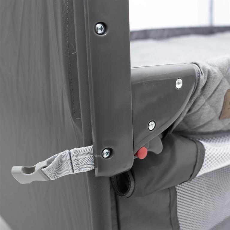 - Lateral dobrável regulável em altura para se adaptar a diferentes alturas de cama.