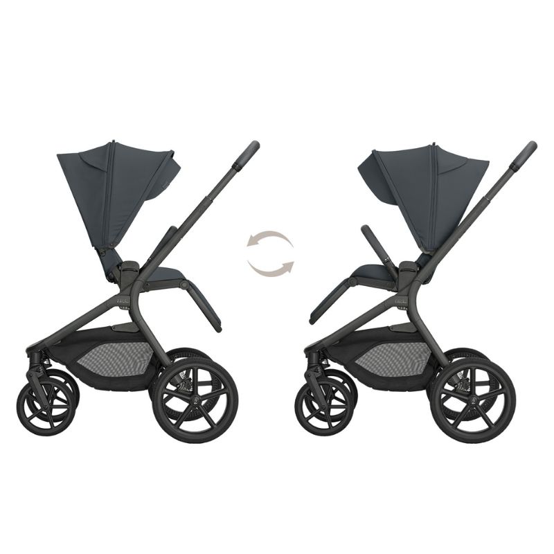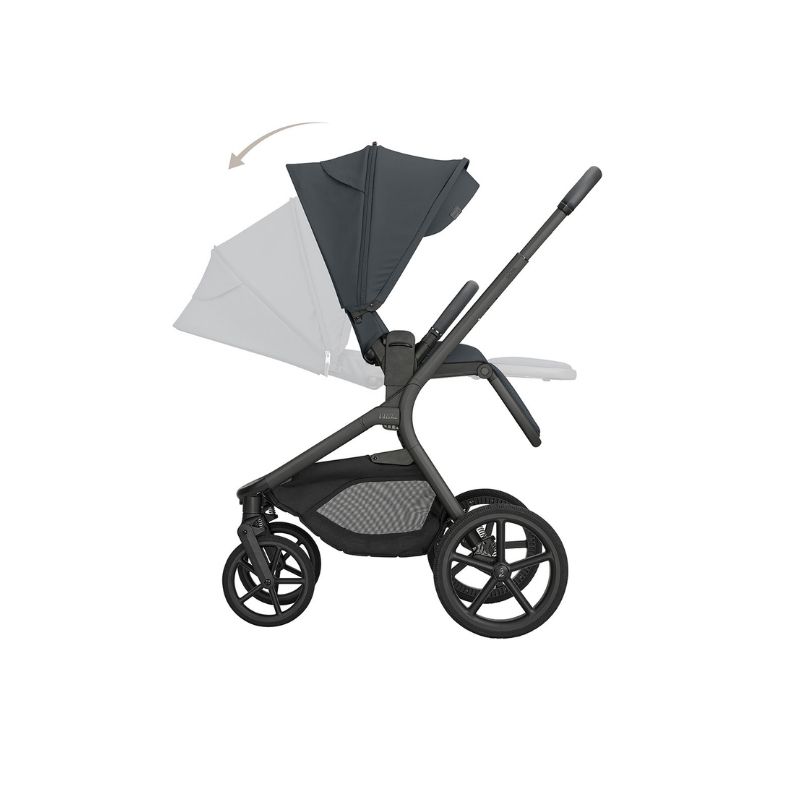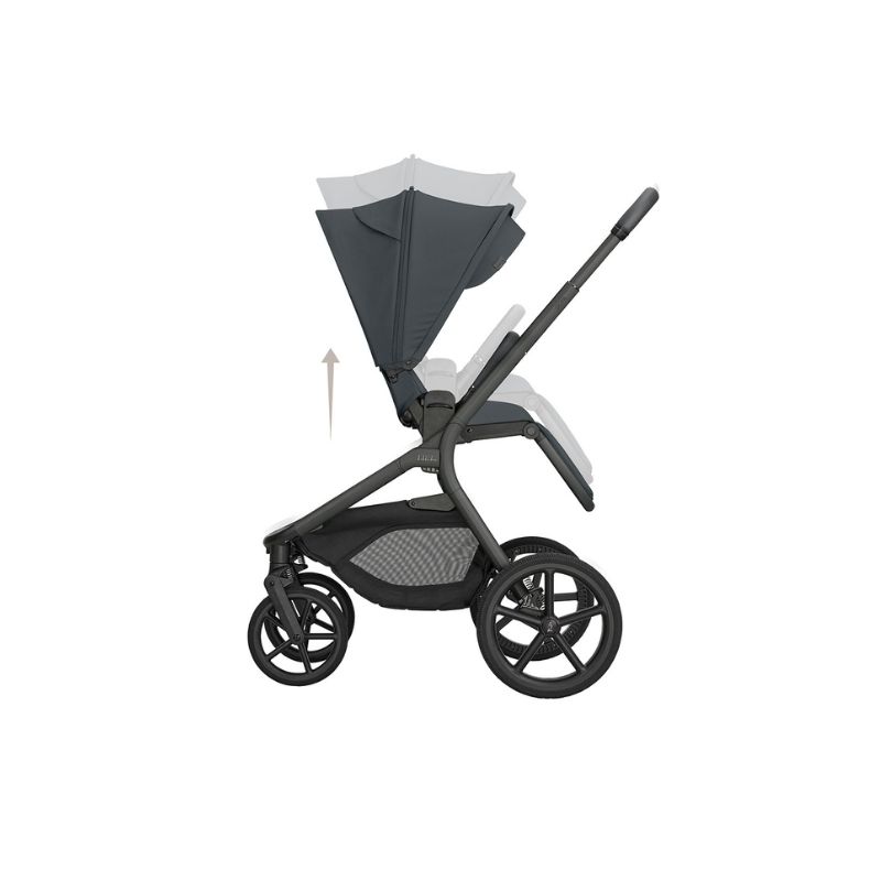 - Sistema de fecho exclusivo: Fecha de forma compacta com a alcofa diretamente na estrutura do carrinho de bebé.
