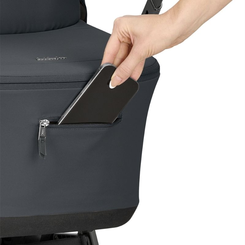 - Bolso prático com fecho para telemóvel no próprio berço.