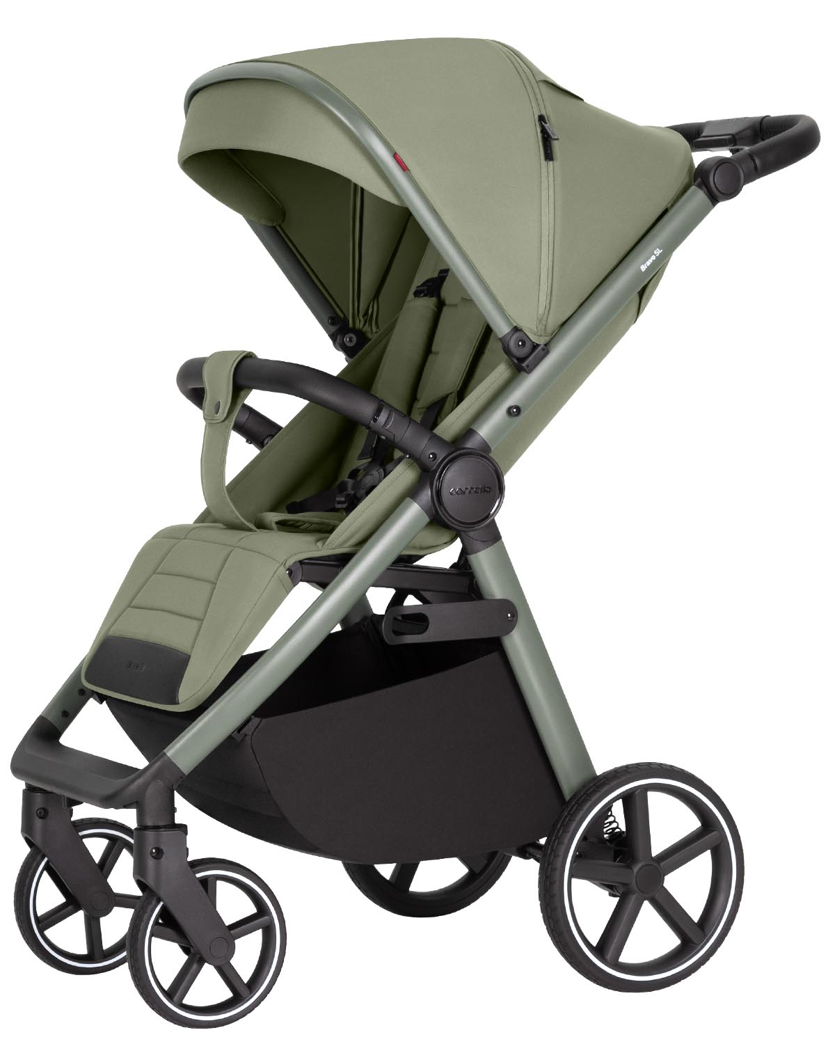 O carrinho de bebê Bravo SL Deluxe possui uma estrutura de alumínio resistente com acabamento premium na mesma cor do tecido. Esse design confere ao modelo uma aparência elegante e harmoniosa.