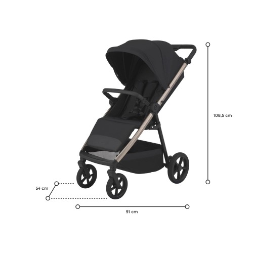 Uma verdadeira joia entre os carrinhos de bebê. Um assento longo e largo (95 × 34 cm), sistema de fechamento com uma só mão, guidão ajustável, excepcional absorção de impactos e rodas de gel são soluções que facilitam e garantem o conforto de uso.