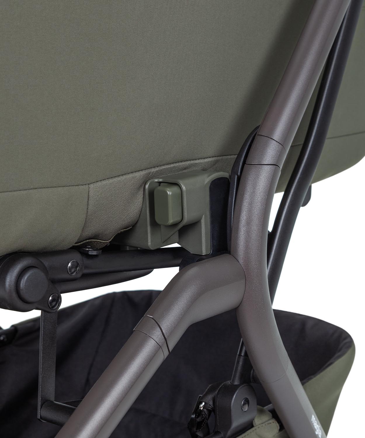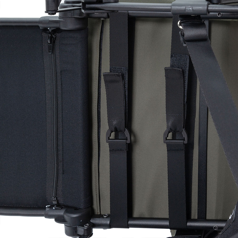 A grande capota e a cobertura isolante para os pés criam um microclima confortável em climas mais frios.