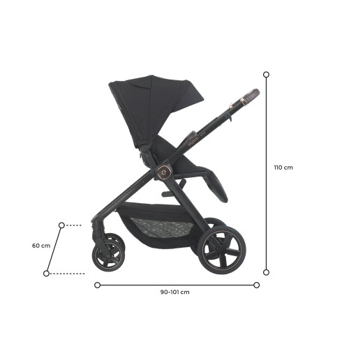 O carrinho Espiro pode ser montado na estrutura exatamente da maneira que seu filho preferir — virado para a frente ou para trás. Possui um encosto reclinável em múltiplas posições, que pode ser totalmente reclinado quando seu pequeno quiser tirar uma soneca, ou levantado para permitir que uma criança curiosa observe o mundo ao seu redor. O sistema de ajuste também se aplica ao apoio para os pés, permitindo que você adapte a estrutura do carrinho à altura do seu filho.