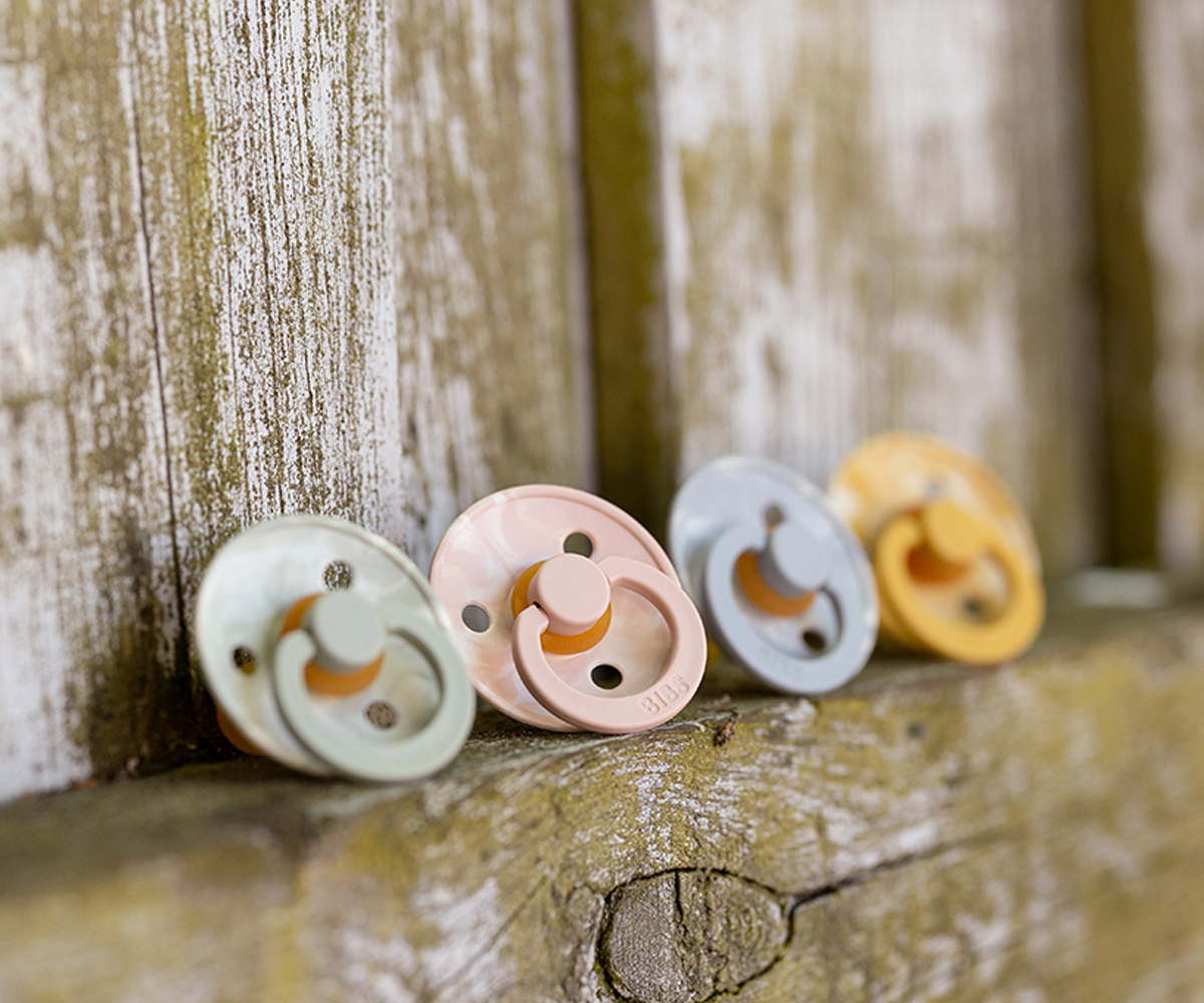 As novas cores das chupetas BIBS estão na moda. Inspirado na técnica japonesa Tie Dye que faz com que os tecidos sejam tingidos apenas em algumas partes, dando origem a inúmeros desenhos. Design exclusivo e original criado e fabricado na Dinamarca pela BIBS. São chupetas de PP, sem BPA ou ftalatos, nem PVC.