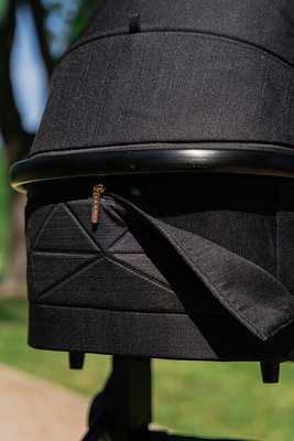 - Capô conversível Up to You: O capô conversível Muuvo é ativado com um simples movimento no painel traseiro fotovoltaico perfurado, permitindo que o assento cresça junto com o seu pequeno.