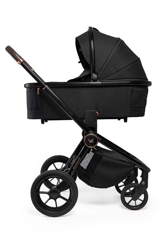 - O chassi Muuvo Quick SE2 é feito de alumínio reforçado, o que o torna um chassi ultraleve e altamente durável. Aprovado de 0 a 22 kg e com cesto de 3 kg, o Muuvo está pronto para tudo. Além disso, seu acabamento escovado o destaca junto às combinações cromadas e douradas de cada modelo.