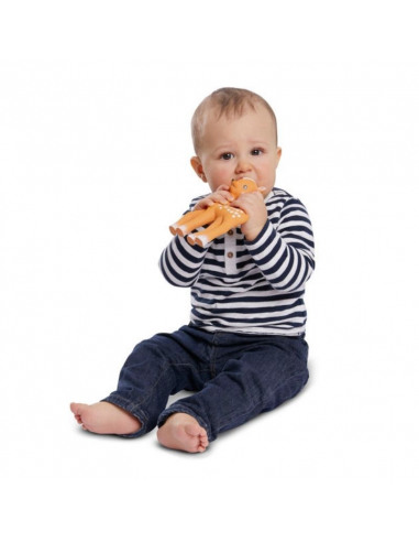 O seu sentido de paladar será também estimulado graças à flexibilidade do mordedor e às numerosas zonas de mastigação. E não é só: a borracha natural é ideal para acalmar as gengivas do bebé quando os dentes estão a nascer.