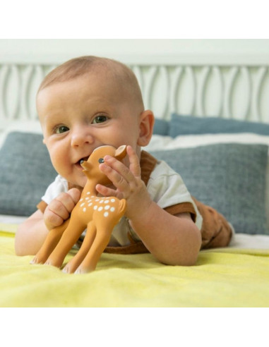 Se estiver a pensar em presentes originais para bebés, este mordedor tem a vantagem de ter as mesmas características que o mordedor clássico da jirafa Sophie, mas desta vez na forma de um cervo, para que possa deliciar os seus pais. É também uma boa alternativa se o bebé já tiver um mordedor da Sophie, para que possa brincar com ambos.