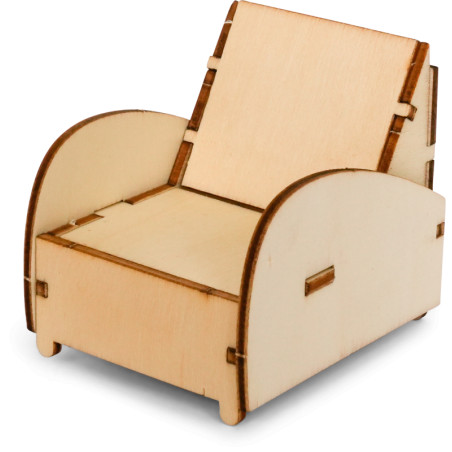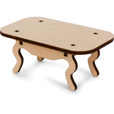 As peças de madeira pré-cortadas podem ser facilmente montadas com instruções simples e são em escala 1:12.