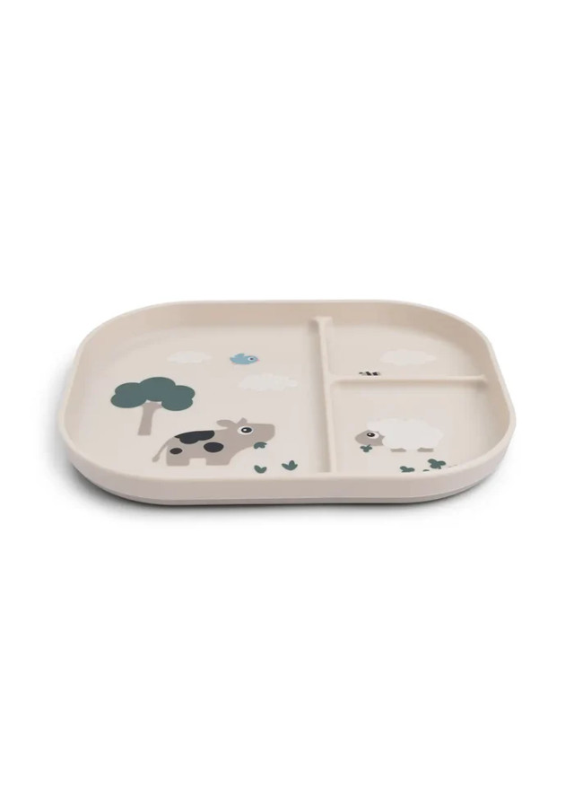 Uma base antiderrapante prática garante que o prato com divisórias permaneça no lugar durante a refeição.