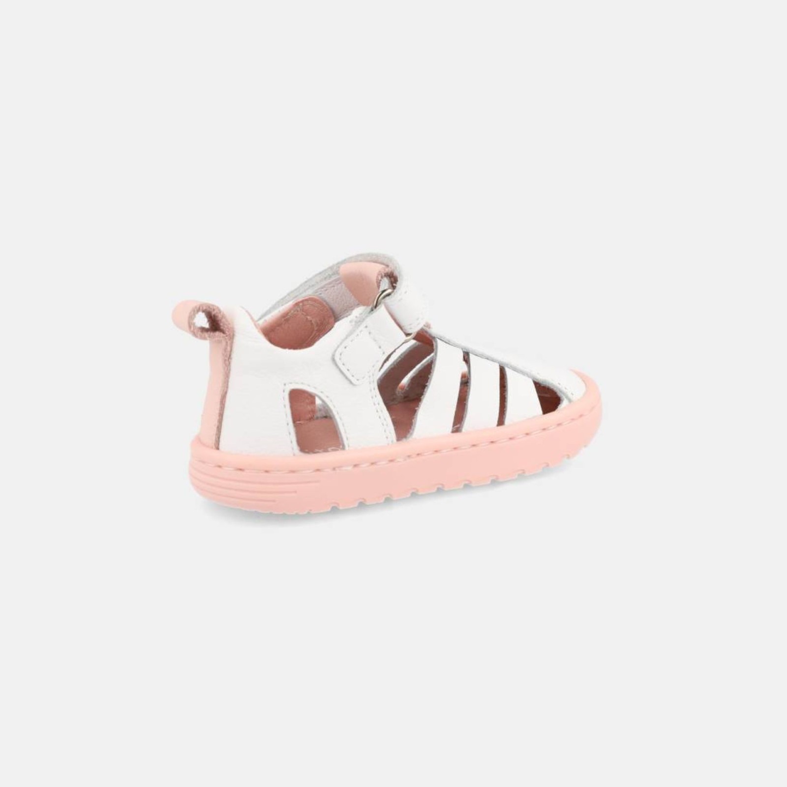 Sandálias barefoot desportivas da Blanditos by Crio?s Calzados, pensadas para deixar as crianças muito confortáveis e frescas no uso diário, incluindo na escola. Têm um formato amplo, que deixa os dedos livres. Já a sola, é fina, plana e flexível, com caixa em toda a volta para maior proteção do modelo. São em couro e fazem parte da linha tradicional da Blanditos, fabricada em Espanha.Fase de marcha: É um modelo que resulta melhor para crianças que caminham sem apoio há mais de seis meses, por ter uma sola mais estruturada e com proteção em toda a volta. Tanto pode ser usado por crianças que estejam na aquisição da marcha, como com marcha completa. Apenas recomendamos evitar nos primeiros passos (1 a 3 meses após começarem a caminhar sem apoio) por terem caixa em toda a volta.