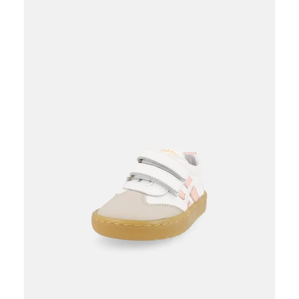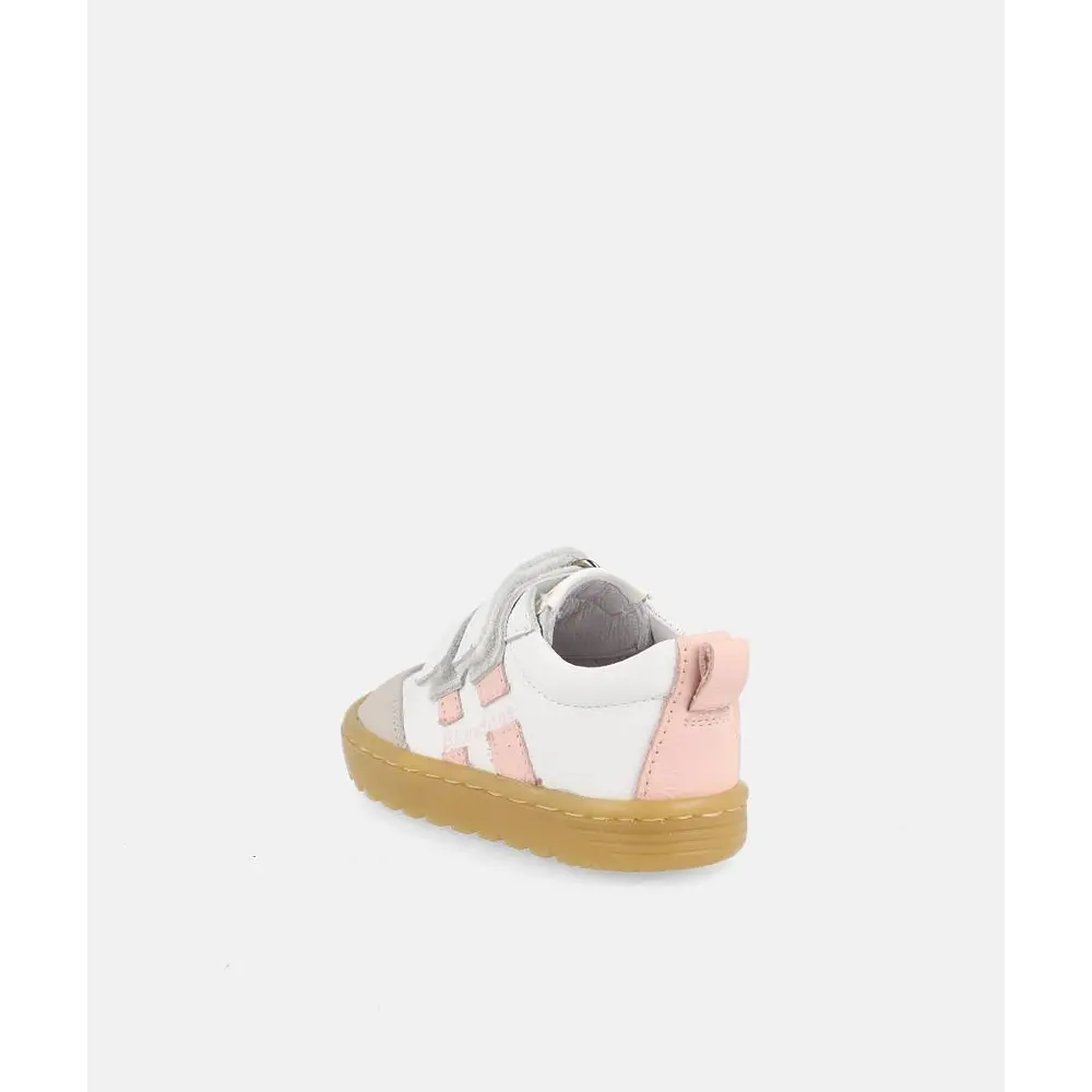 Com um design minimalista e intemporal, este modelo em branco com detalhes em rosa é perfeito para o dia a dia das crianças, combinando facilmente com qualquer look.