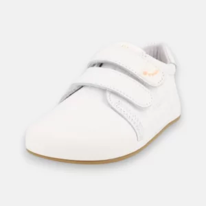 Feitas em pele branca de alta qualidade, estas sapatilhas foram pensadas para oferecer flexibilidade máxima e liberdade de movimento, ajudando os pés a crescer de forma natural.
