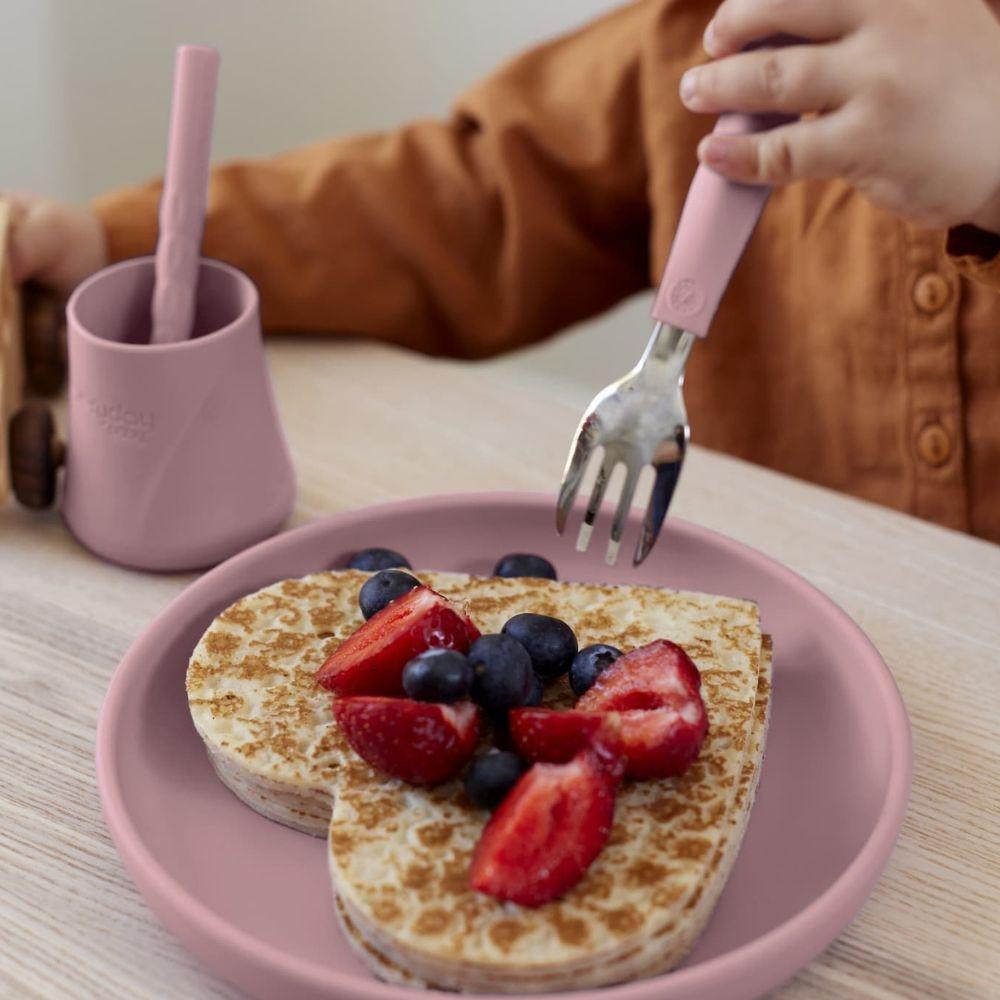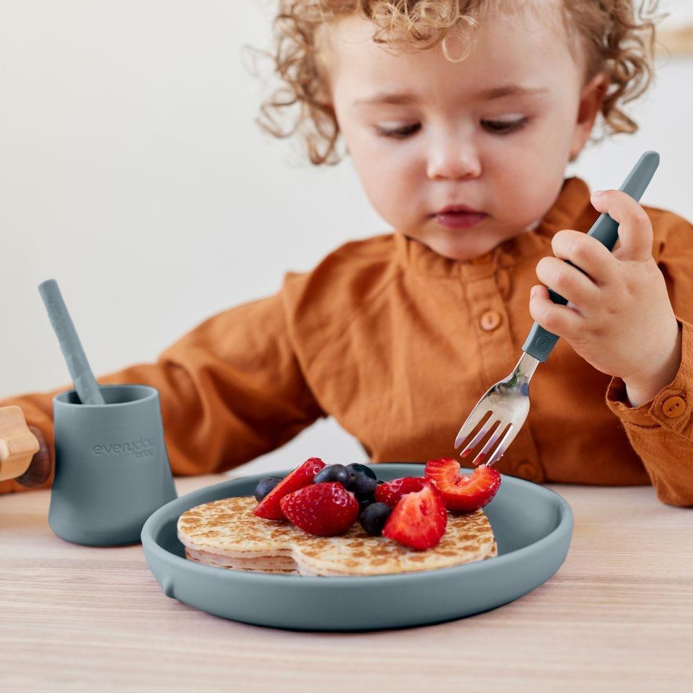 A colher e o garfo são projetados para que as crianças aprendam uma posição natural de preensão desde o momento em que começam a comer sozinhas.